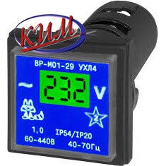 НАЗНАЧЕНИЕ ИНДИКАТОРА Цифровой щитовой вольтметр ВР-М01-29 АС60-440В предназначен для технологического контроля величины напряжения в электрических цепях переменного тока, как в промышленных зонах, так и сферах ЖКХ, бытовом секторе, прочих объектах народного хозяйства. Может применяться в составе систем автоматизированного контроля и управления технологическими процессами в качестве основного или дополнительного индикатора на передвижных и стационарных объектах. Является средством контроля. Периодической поверке не подлежит. ТЕХНИЧЕСКИЕ ХАРАКТЕРИСТИКИ ИНДИКАТОРА | Питание | От измеряемого напряжения | | Частота измеряемого напряжения | Гц | 40…70, 400 * | | Диапазон измеряемого напряжения | В | АС60...445 | | Измерительная цепь, она же питание | Х1— Х2 | | Основная погрешность измерений, не хуже | % | 0.5% +/- единица младшего разряда | | Потребляемая мощность, не более | Вт | 1,0 | | Степень защиты: корпус/клеммы | IP54/IP20 | | Диапазон рабочих температур | °С | -25...+55 | | Температура хранения | °С | -40...+70 | | Относительная влажность воздуха | % | до 80 при 25ºС | | Рабочее положение в пространстве | произвольное | | Режим работы | непрерывный | | Средний срок службы, не менее | лет | 8 | | Габаритные размеры/масса | мм/кг | 23х23х54/0,021 | | Средняя наработка на отказ, не менее | ч | 10000 |